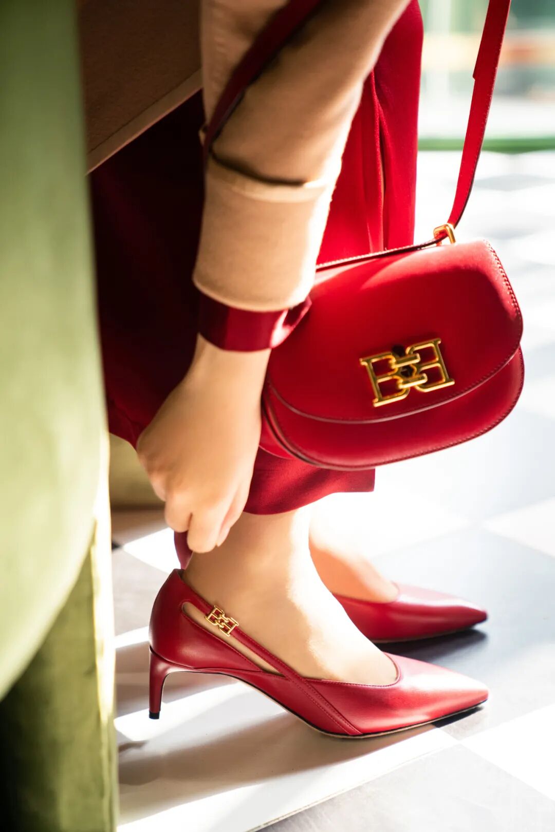 红色的Baily翻盖包和Elsa皮革细跟浅口鞋正是假日归途系列的典型代表。