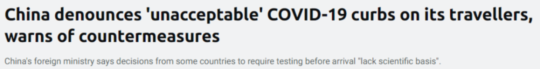 近期,中方宣布将对新型冠状病毒感染实施“乙类乙管”,并出台中外人员往来暂行措施。很多国家对此表示欢迎,但有一些国家这几日开始对来自中国的旅客采取临时防疫措施,包括入境后检测、对阳性人员进行隔离等。中方对此有何评论?对此,毛宁表示,中方发布《中外人员往来暂行措施》后,不少国家反响热烈,我们对此表示赞赏,将继续因应疫情形势不断优化调整防控措施,为中外人员安全、健康、有序往来创造更好条件,更好保障对外交流合作。“关于有关对中国旅客采取临时防疫措施的问题,在日前记者会已作过回应。我愿再次表明中方态度。我们愿同国际社会加强沟通,共同努力战胜疫情,同时也认为部分国家采取仅针对中国的入境限制措施缺乏科学依据,一些过度做法更让人不能接受。我们对试图操弄疫情防控措施以达到政治目的的做法表示坚决反对,将针对不同情况本着对等原则采取相应措施。”