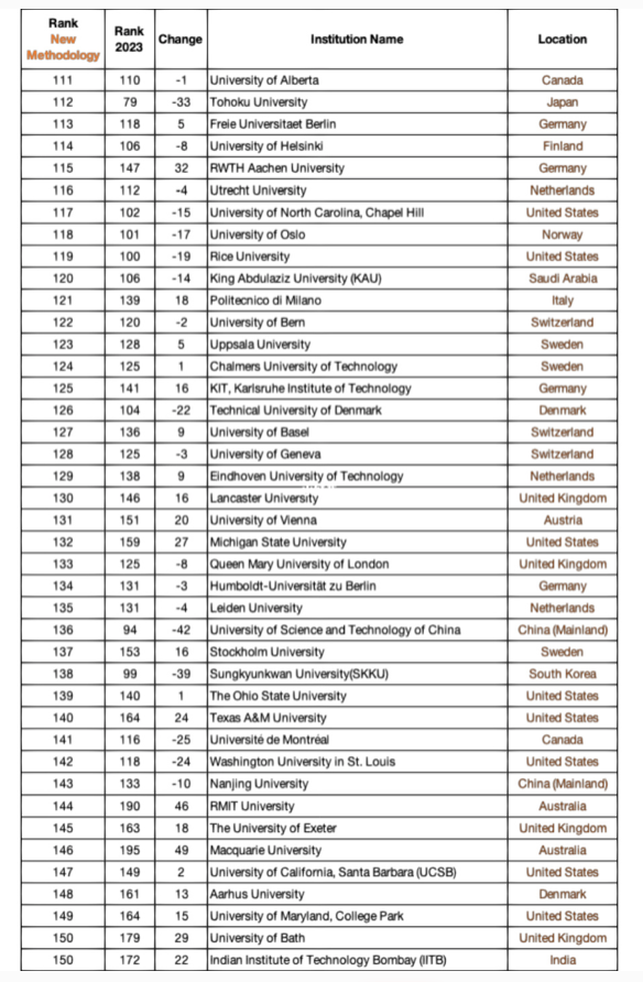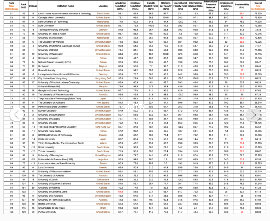 还有两项指标 “国际研究网络”(International Research Network)和“就业成果”(Employment Outcomes)在2023年是不计入综合评分的,但是每个大学也会统计这项数据。