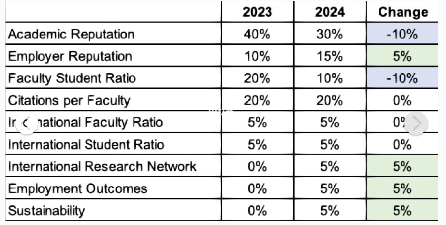 据了解,2024年QS世界大学排名的权重将会发生变化,评分重点变了。