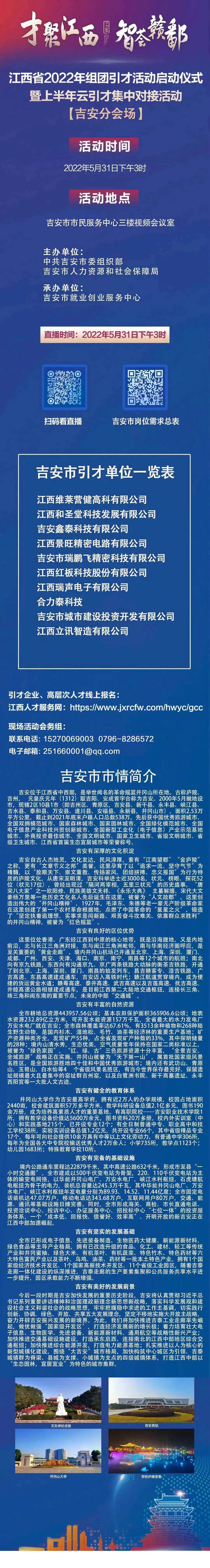 【聚焦5月31日•吉安市引才】“才聚江西*智荟赣鄱”江西省2022年组团引才活动启动仪式暨上半年云引才集中对接活动——吉安分会场