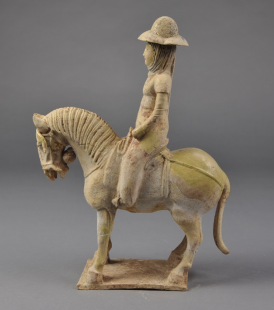 唐代,彩绘釉陶骑马女俑(洛阳博物馆)