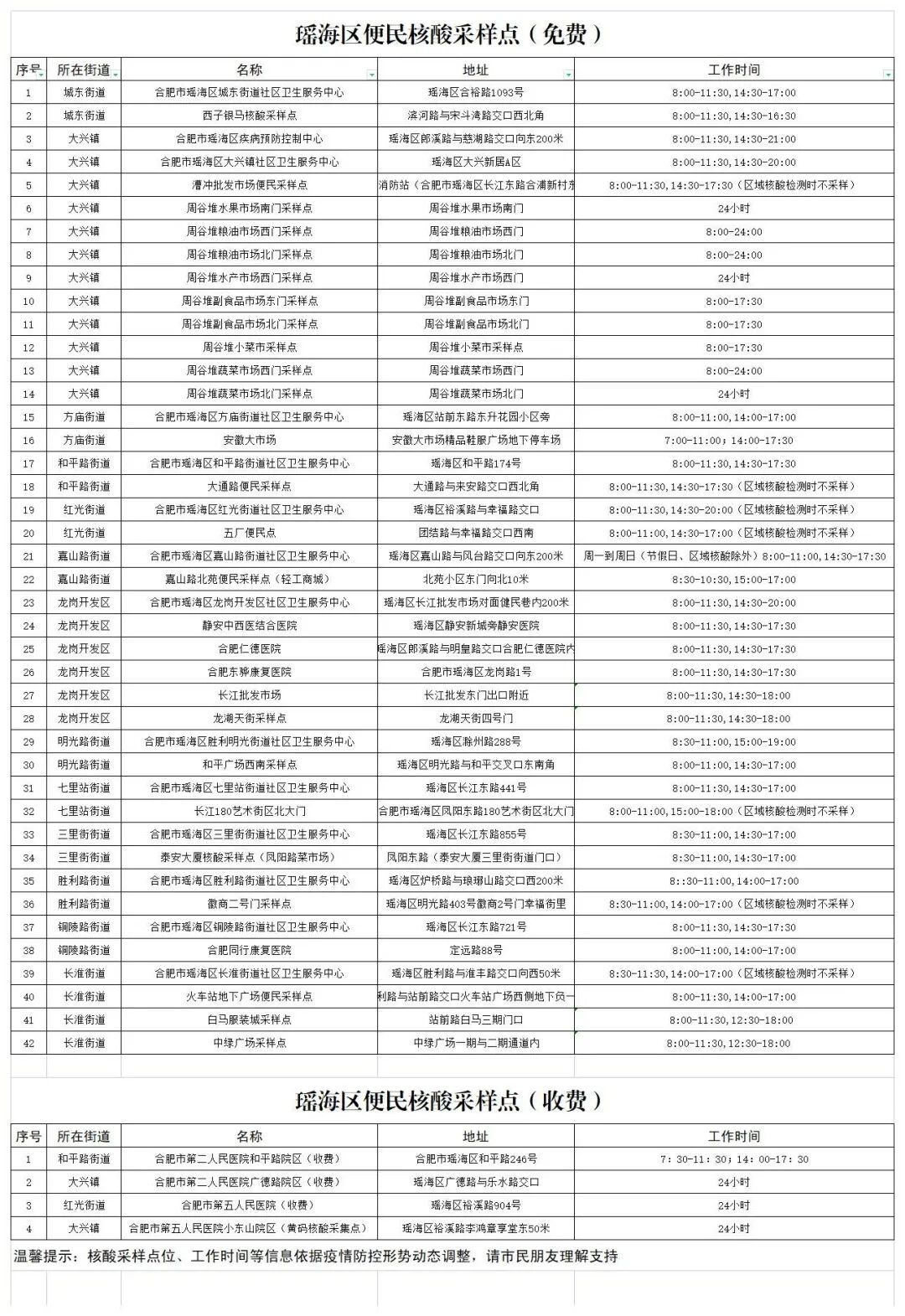 为方便群众就近、快速完成采样,现将瑶海区最新核酸采样点信息
