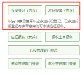 如果你是第一次进入全国征兵网,可以直接从“兵役登记(男兵)”进入页面;或者从“应征报名(男兵)”进入页面;