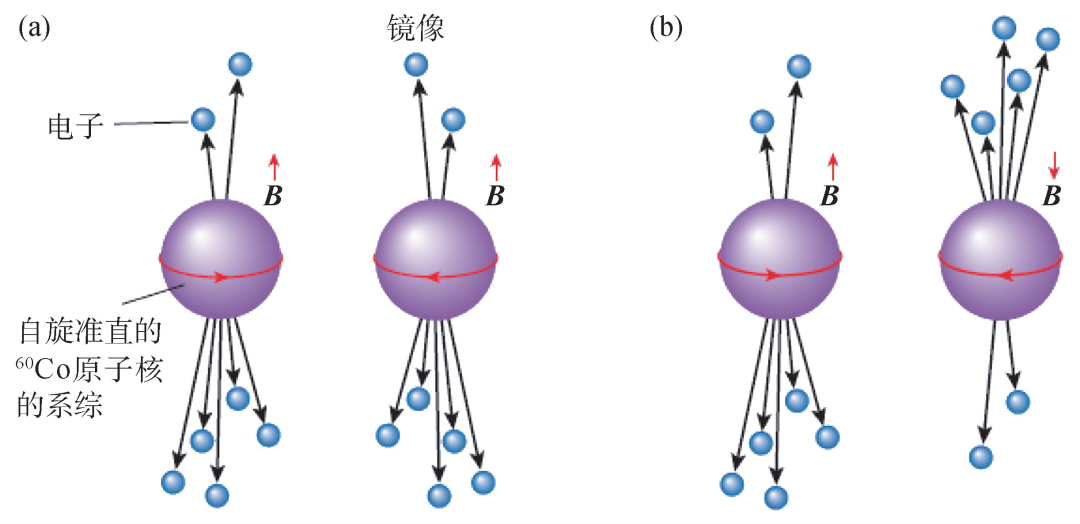 到了1950年代,对于电磁相互作用和强相互作用,宇称守恒(镜像的世界和现实世界的外观和行为完全一样)的理念已经确立。几乎所有的物理学家都期望弱力也是如此。然而,如果宇称守恒成立,现有的理论就不能解释 k 介子的衰变。因此,在美国工作的中国理论学家李政道和杨振宁决定,在已知的物理结果中更仔细地考察弱相互作用的宇称守恒的实验证据。他们惊讶地发现,什么也没有找到。