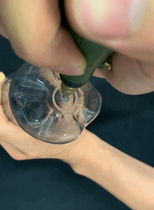 因此,手边没有气球和小珠的胖友也不要着急,我们还提供了最简陋本质的版本供您选择:挤压瓶子后把上面的洞口堵住,等水进入瓶子后,再把下面的洞口也堵住就好啦。