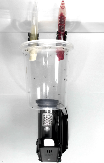 为了看看公蚊子到底是喜欢血液还是糖水,研究者们使用了这样的一个装置——