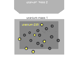 在反应堆中,中子(蓝)引发铀235(黄)裂变。图片来源:wikipedia