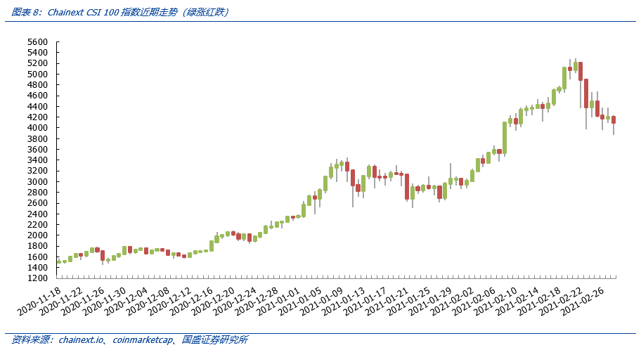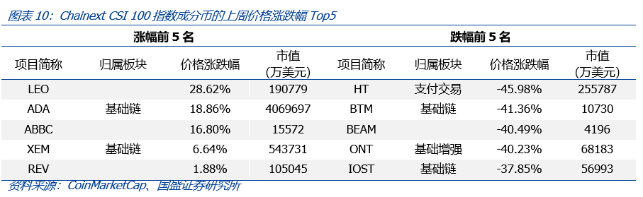 四、上周行情回顾:ChainextCSI 100下跌21.48%,细分板块中文娱社交表现最优