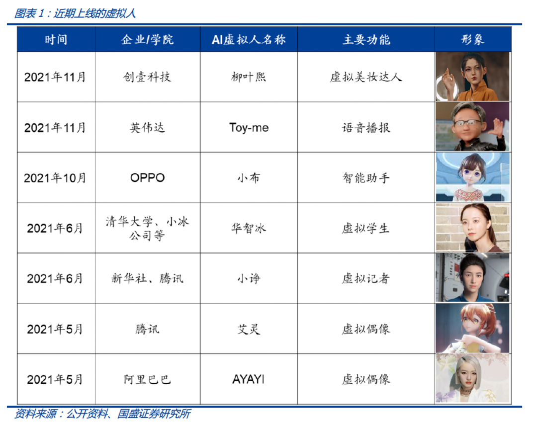 本文节选自国盛证券研究所已于2021年12月20日发布的报告《国盛区块链 | 元宇宙(七)虚拟人的“灵魂”是什么?》,具体内容请详见相关报告。