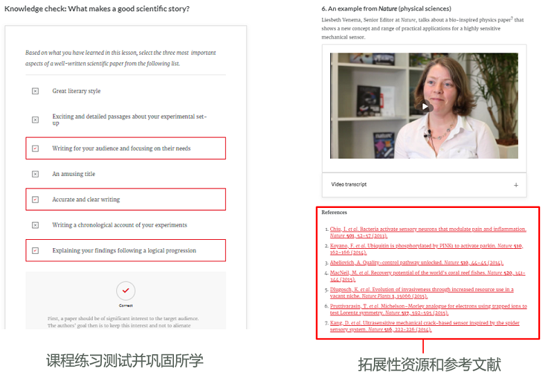 学员完成课程后,即可下载学习证书,作为接受过相关培训的证明,证书由《自然》总编辑Magdalena Skipper签发。