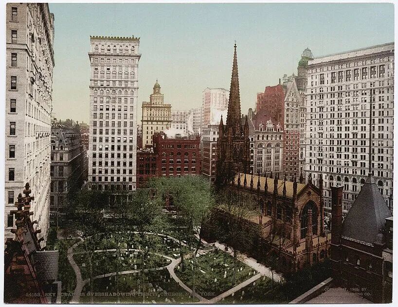 Latting天文台于1854年缩短后,三一教堂成为城市最高的建筑。事实上,它在天文台建成前,也是1846—1853年的纽约最高建筑。三一教堂位于曼哈顿下城区,为哥特复兴风格建筑,连带塔尖共达到279英尺(85米)的高度。它也是当时美国的最高建筑,直至1869年被芝加哥的圣弥额尔堂超过。