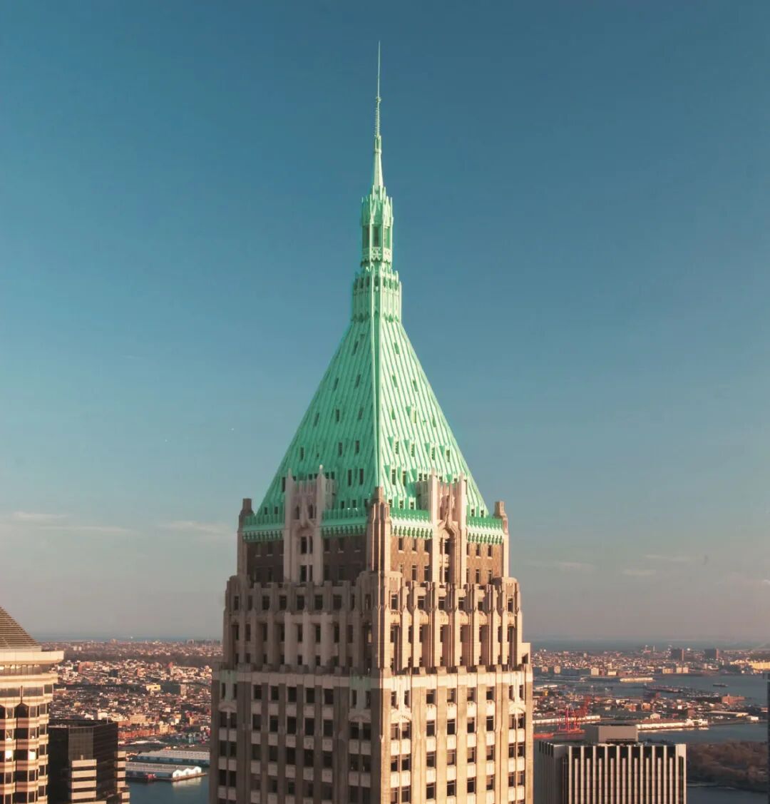 该建筑也被称为华尔街40号,是一座高927英尺(283米)的新哥特式摩天大楼,至今仍矗立在华尔街。该塔楼只花了一年的时间建成,覆盖着浅黄色与深色的砖块,以赤陶土装饰。一个标志性的绿松石尖顶装饰着建筑的顶部。该建筑于1930年5月完工,与克莱斯勒大楼争夺世界最高建筑的荣誉。