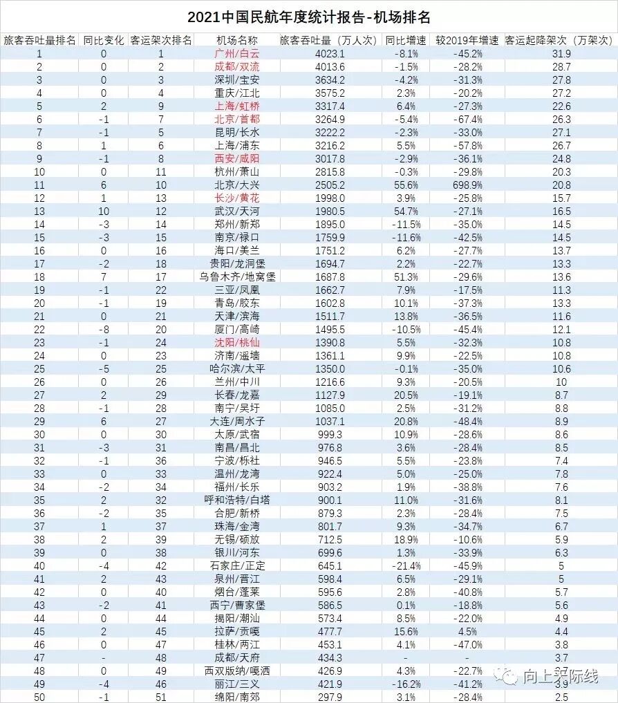 由于受疫情影响,这两年的机场吞吐量排名参考价值不大,我们一起来看看疫情前2019年全国机场旅客吞吐量排行榜: