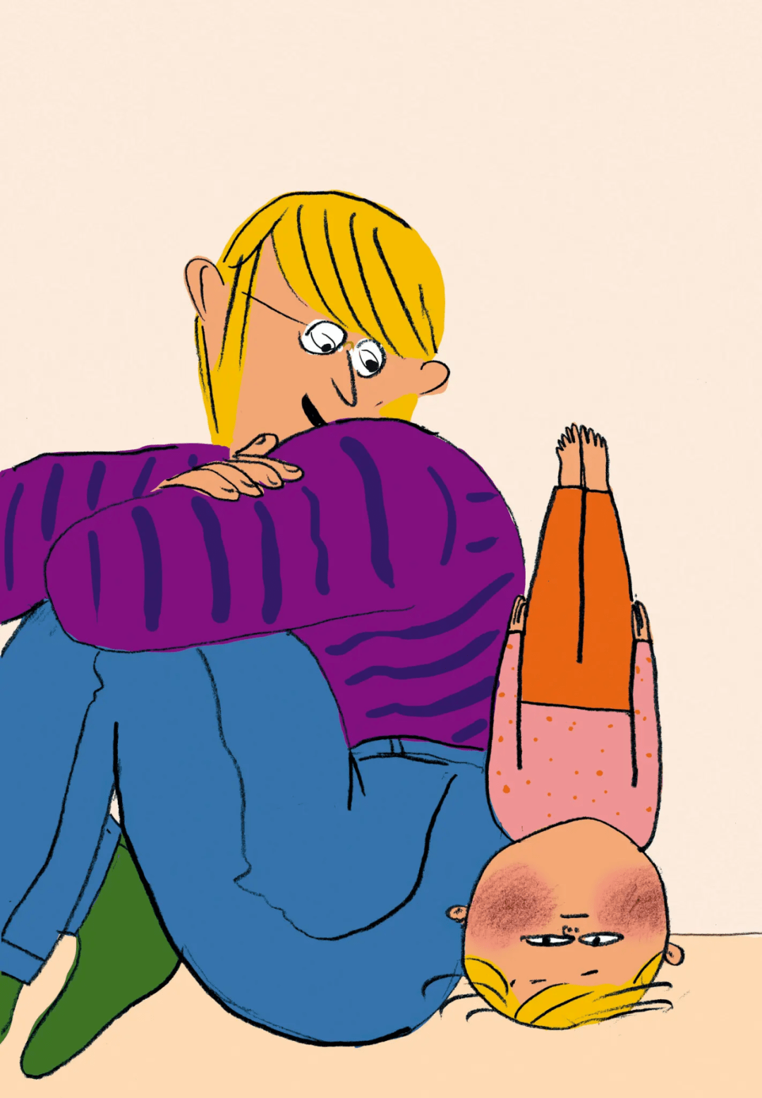 插画家既生动又混乱的笔触画出了Bo的内心世界和家庭生活,既展示了孩子那无处安放的“创造力”,也体现了小波父母对于孩子温柔细致的呵护。