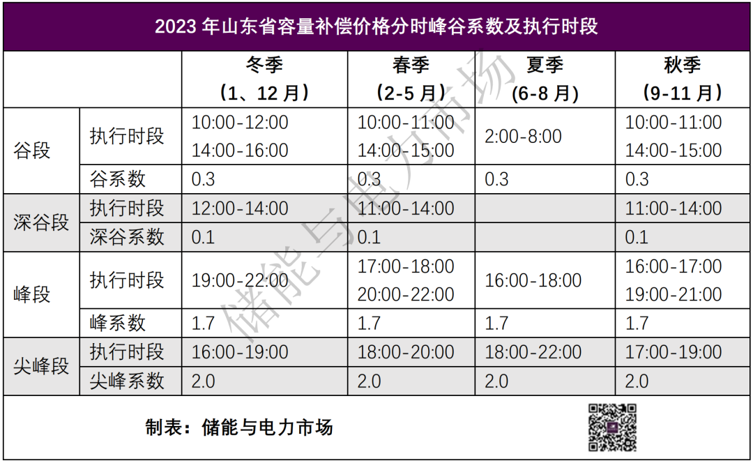 11月16日,国网山东电力公司会同山东电力交易中心发布《关于发布2023年容量补偿分时峰谷系数及执行时段的公告》,根据文件,国网山东省电力公司会同山东电力交易中心根据系统需求,完成2023年不同季节容量补偿分时峰谷系数K1、K2取值及执行时段测算,并引入深谷和尖峰系数及执行时段。