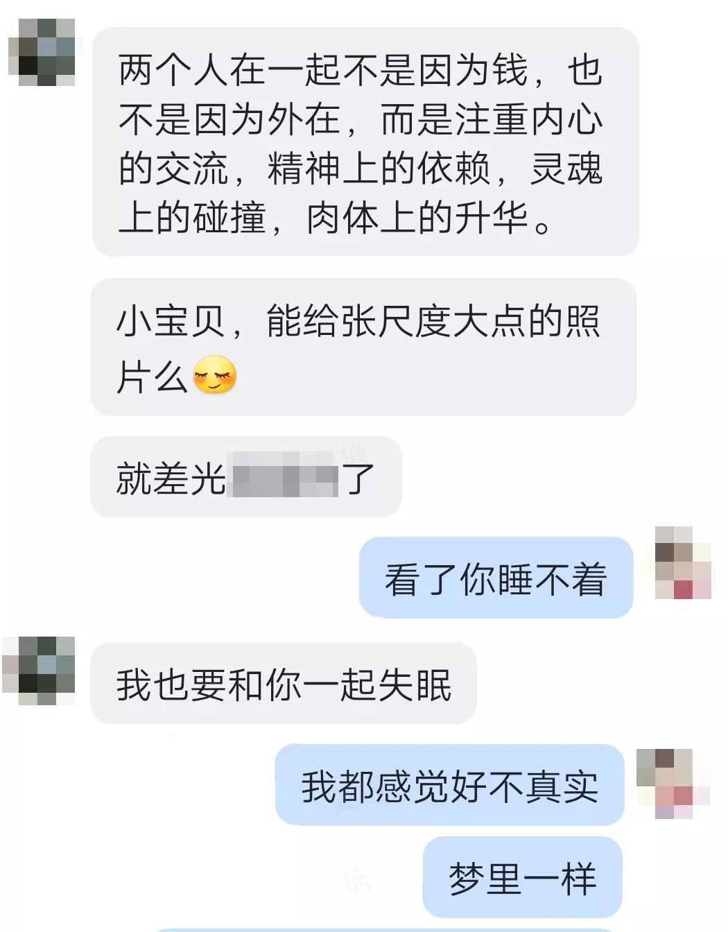 就这样,我们开始以老公老婆互相称呼,不但聊在网站的投资操作,还聊一些男女之间的事,我像着了魔一样被他带着互相“口嗨”,兴致高涨的时候经不住他的软磨硬泡,拍了我最私密的照片发给他,兴奋之情战胜了廉耻之心。