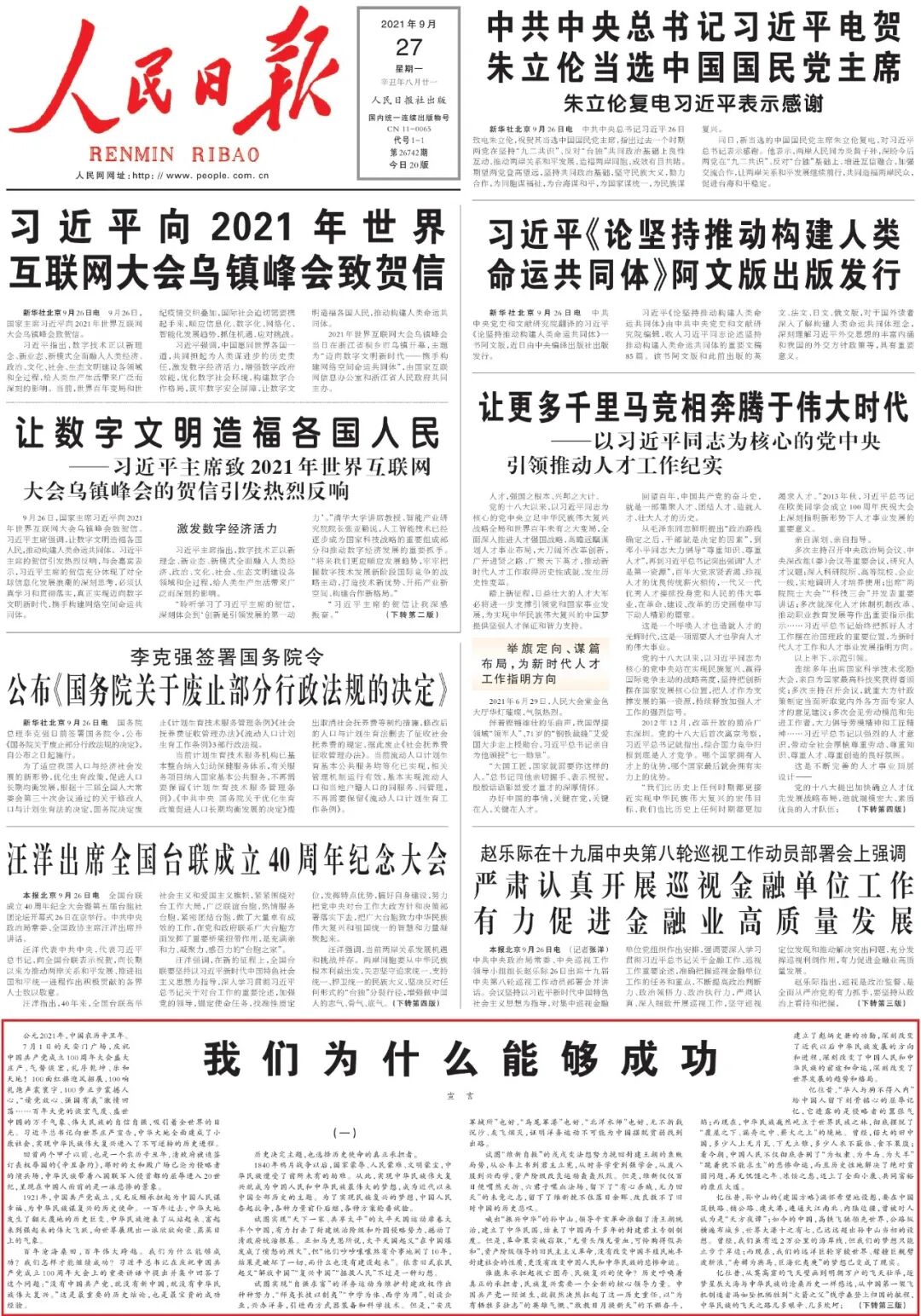 来源:《人民日报》(2021年09月27日第01版)