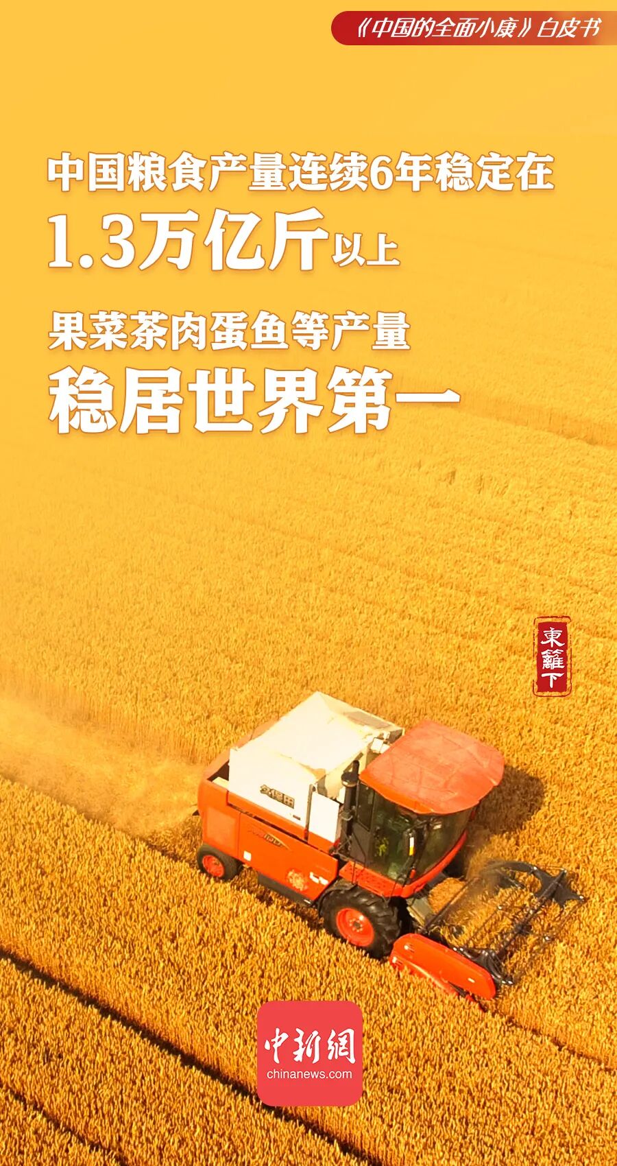 69 粮食产量连续6年稳定在1.3万亿斤以上,果菜茶肉蛋鱼等产量稳居世界第一。
