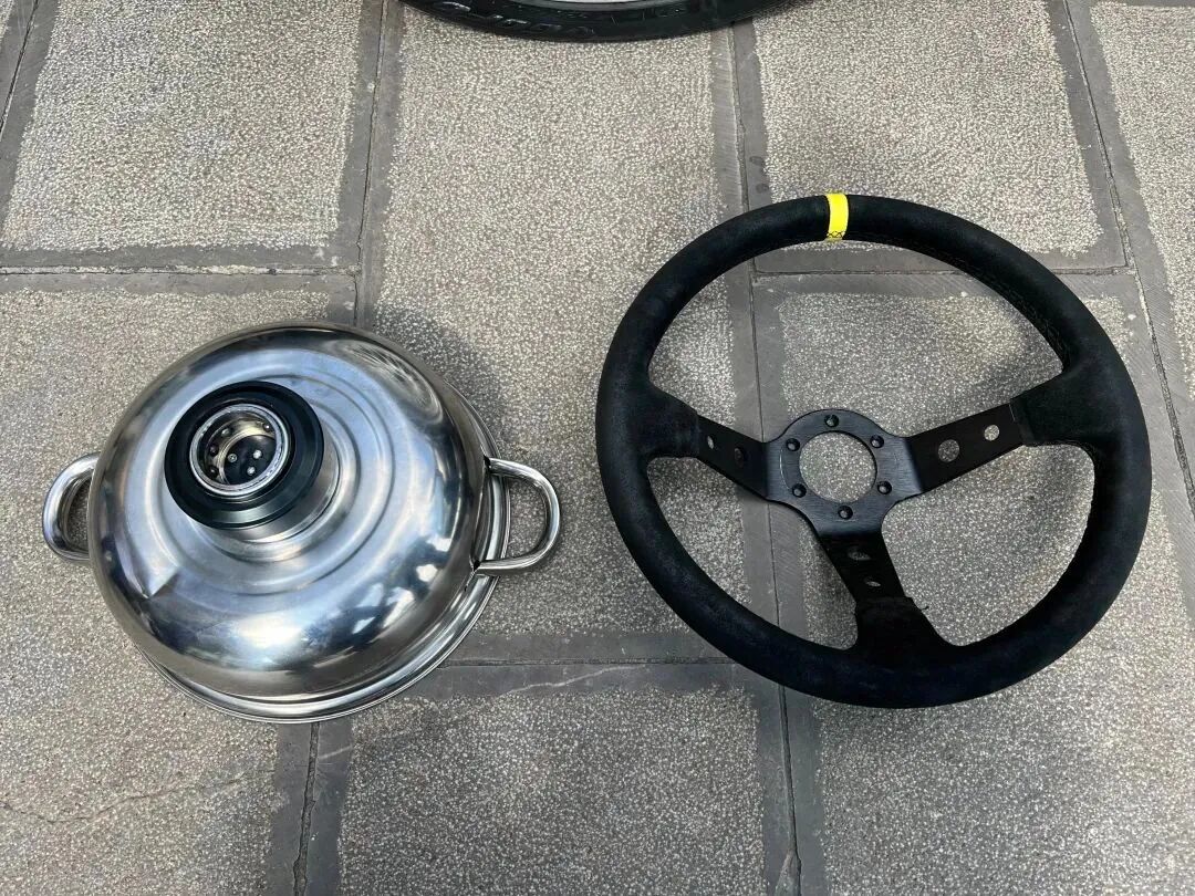 有人用锅改装成车辆方向盘并上路