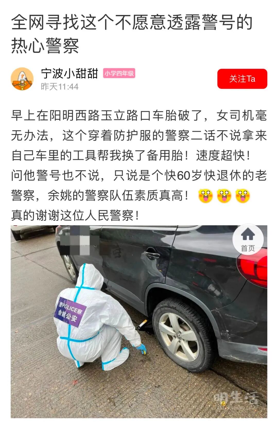 有网友联系上了余姚公安