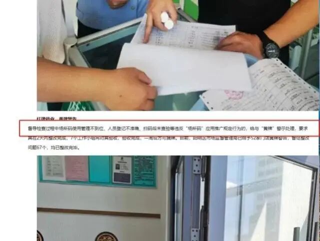 “督导检查过程中场所码使用管理不到位、人员登记不准确、扫码后未查验等违反‘场所码’应用推广规定行为的,给予‘黄牌’警示处理,要求其在2天内整改完成,7个工作小组将对其验收,验收完成,一周后方可摘牌。”
