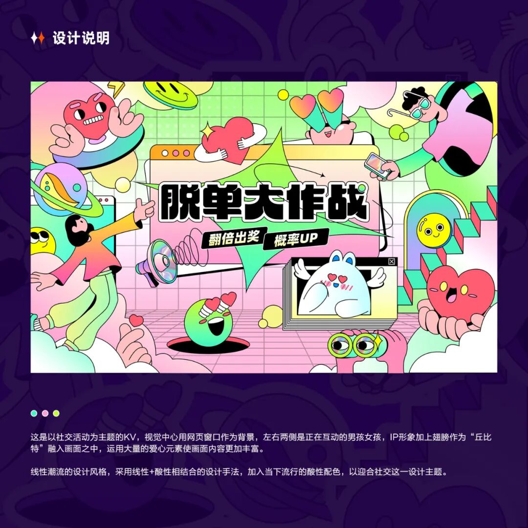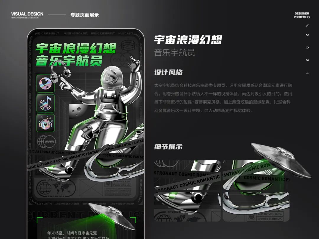 另外现在公司越来越在乎数据的转化,设计应该更多是为运营数据的提升,运营视觉类作品集有个很大的误区就是单纯的展示炫耀技法,只展示各种界面或者视觉炫酷的图片,这样的作品集呈现的只是你的技法能力,但作品集应该是兼顾商业设计和视觉亮点。视觉亮点就是视觉上让用户刺激的,可能是新颖的风格、精美的插画、酷炫的效果、巧妙的创意,也可能是个性的排版、好看的图片或配色等等。那么商业设计是更需要考虑你的受众,需要考虑你的技法呈现对于营销的影响等。