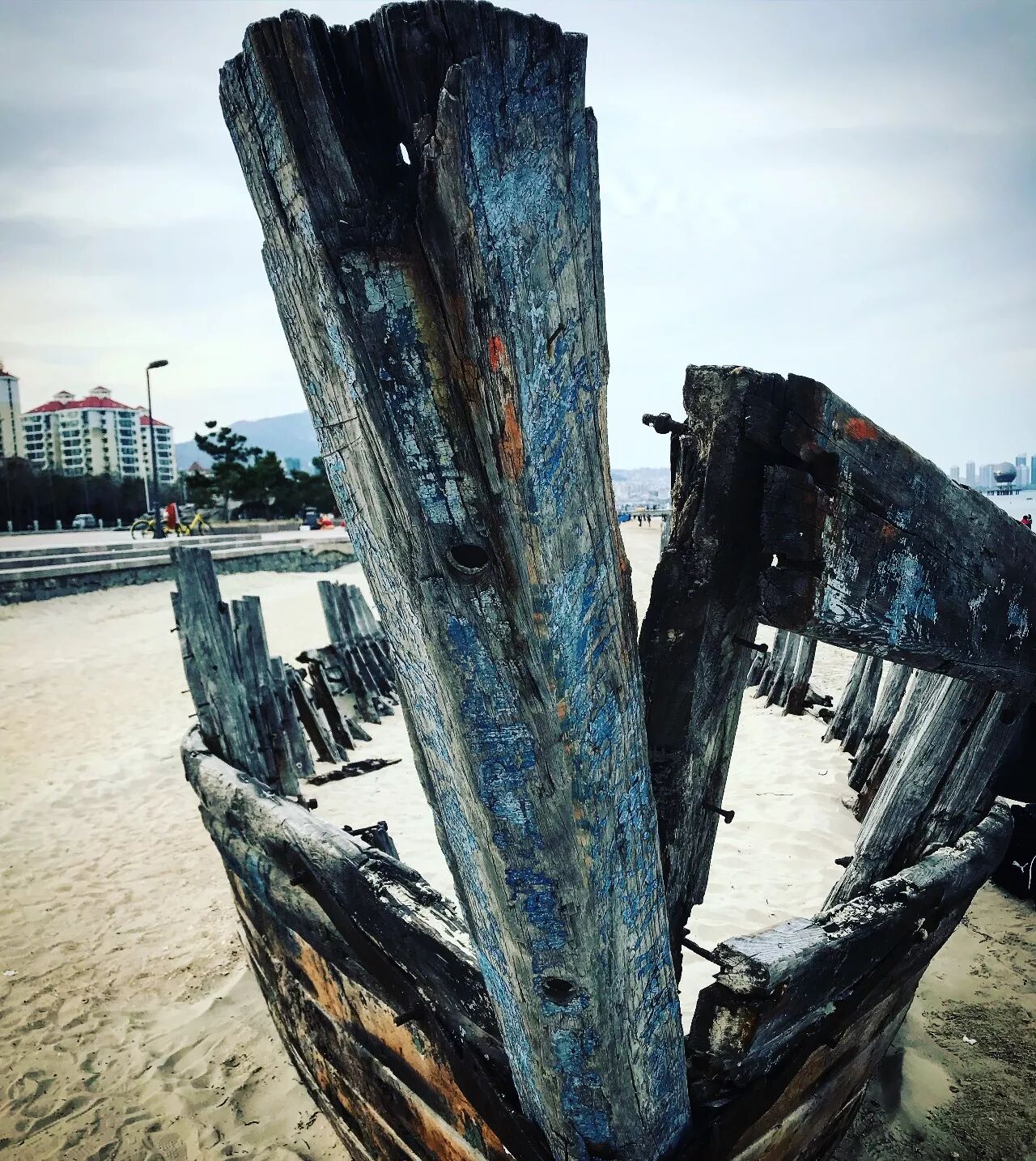 (所有人和海合影,我一眼看到了它,虽破旧,但依稀感受曾与海共舞,如今不能共舞,就凝望海,给你我的目光)