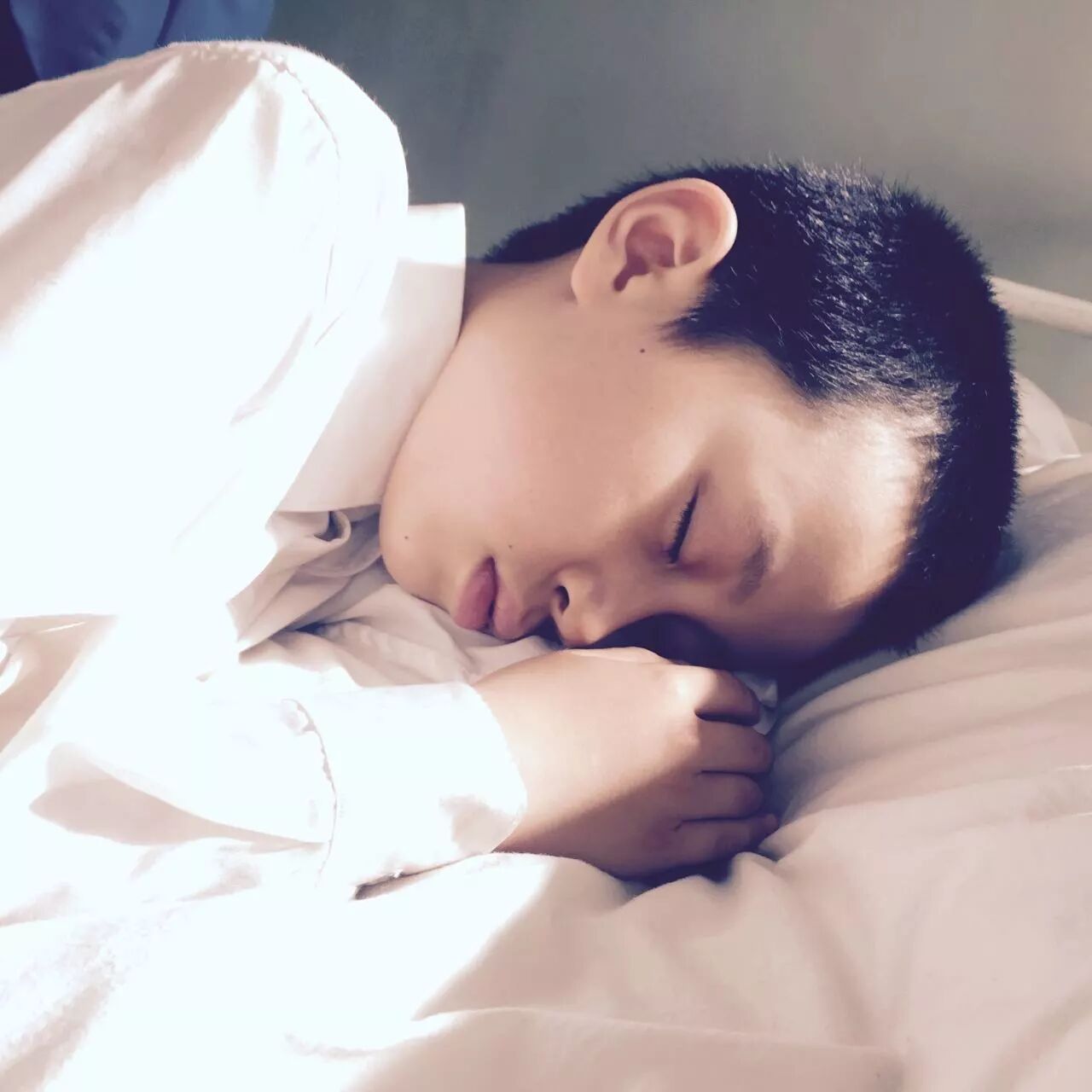 饰演妈妈的演员宫哲很久之后发给过我的一张照片,是她在拍摄间隙抓拍的,少年的他,睡着了。不知道做了一个怎样的梦。