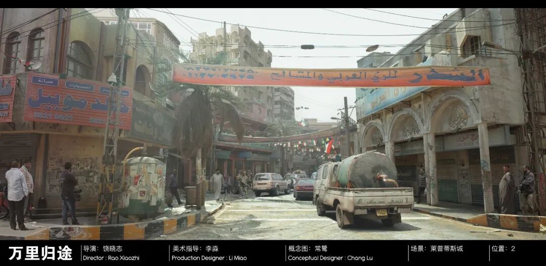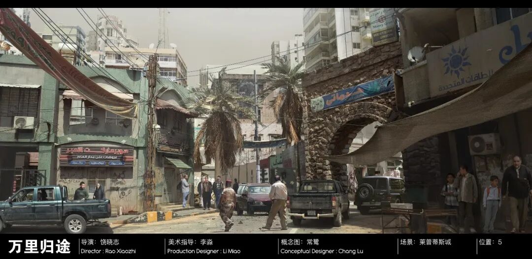 这是李淼第一次和饶晓志合作,也是李淼职业生涯里第一次做有关「剧情战争」题材的电影美术设计。最一开始,他是拒绝的。「这里面有虚构的国家……纯外国的现实主义题材……很多生活细节……一群人历经磨难……整个穿越一个战乱的国家……这太难了,对我来讲,我不太敢做。」