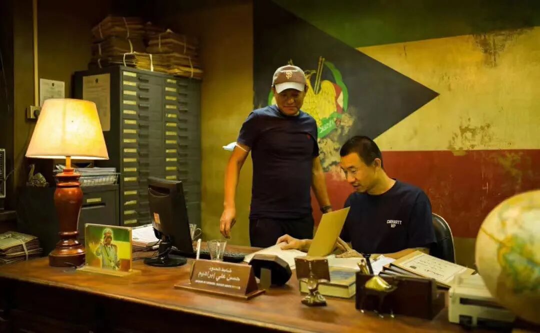 美术指导李淼(右)和同事在影片中“哈桑”的办公室