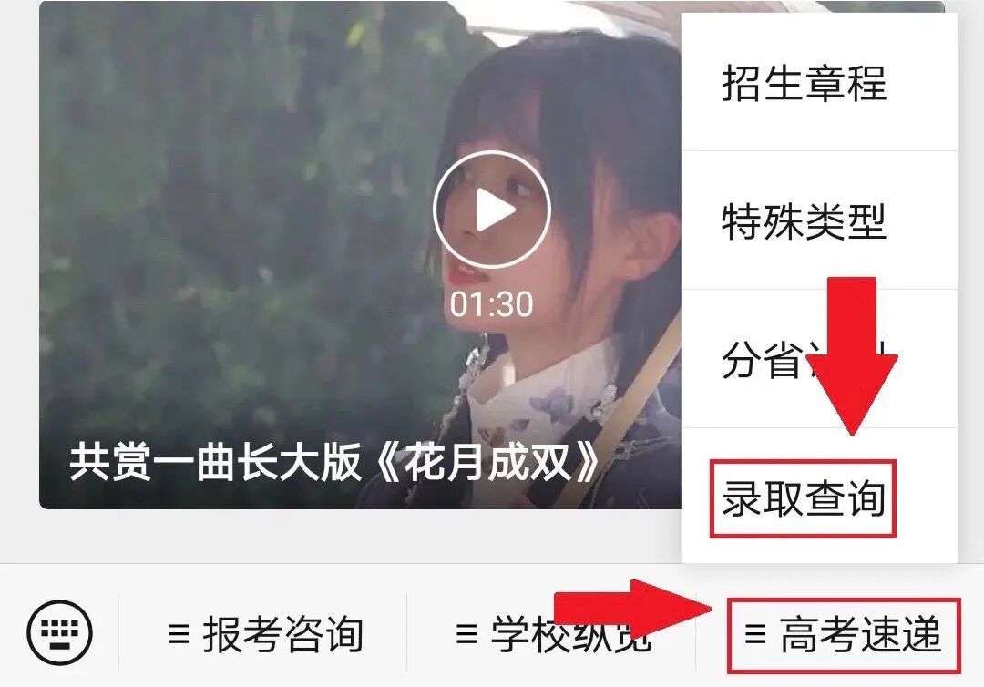 第二步:点击高考速递栏“录取查询”