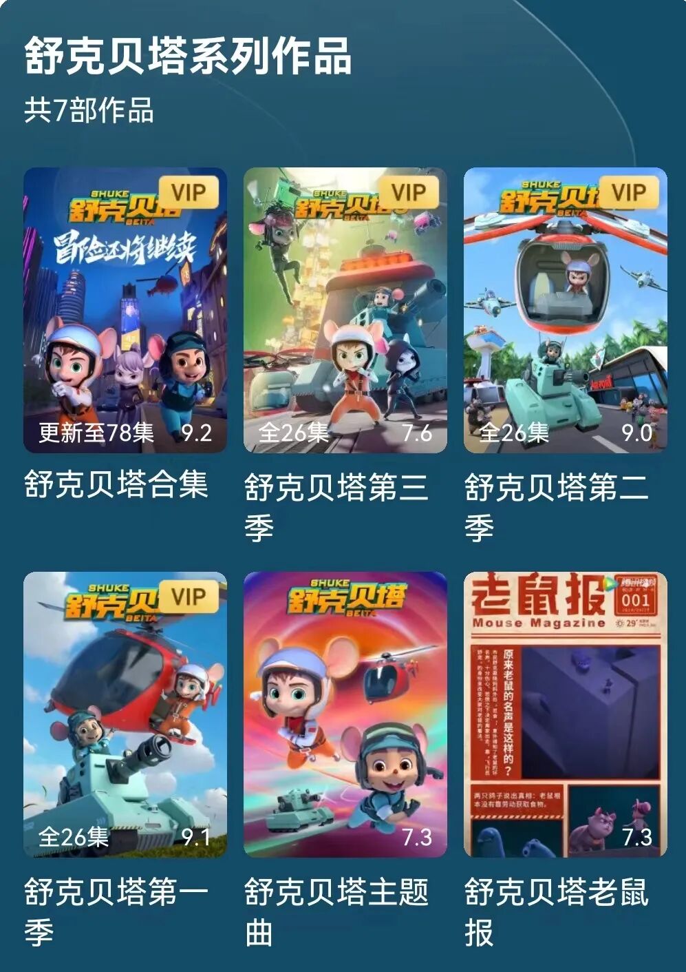 上美影1989年根据郑渊洁小说拍摄的《舒克和贝塔》2019年以来由皮皮鲁总动员公司制作了全新版本动画系列片《舒克贝塔》,并在各大网络视频平台热播。目前, 新的《舒克贝塔》已推出三季,仅腾讯视频平台累计播放量便已近50亿次。