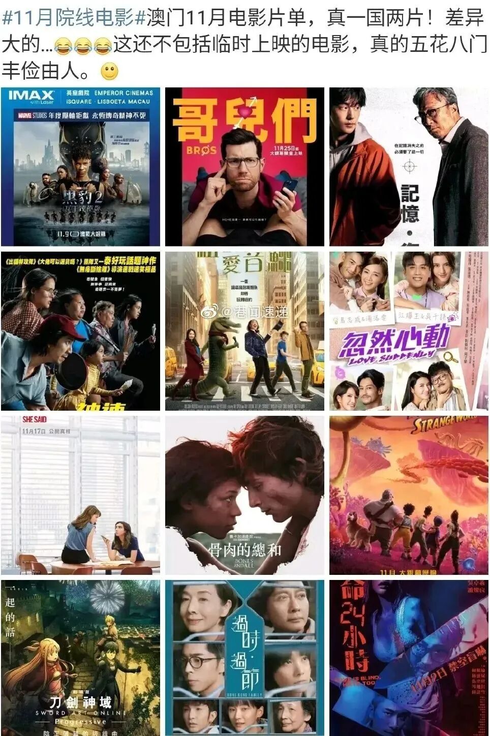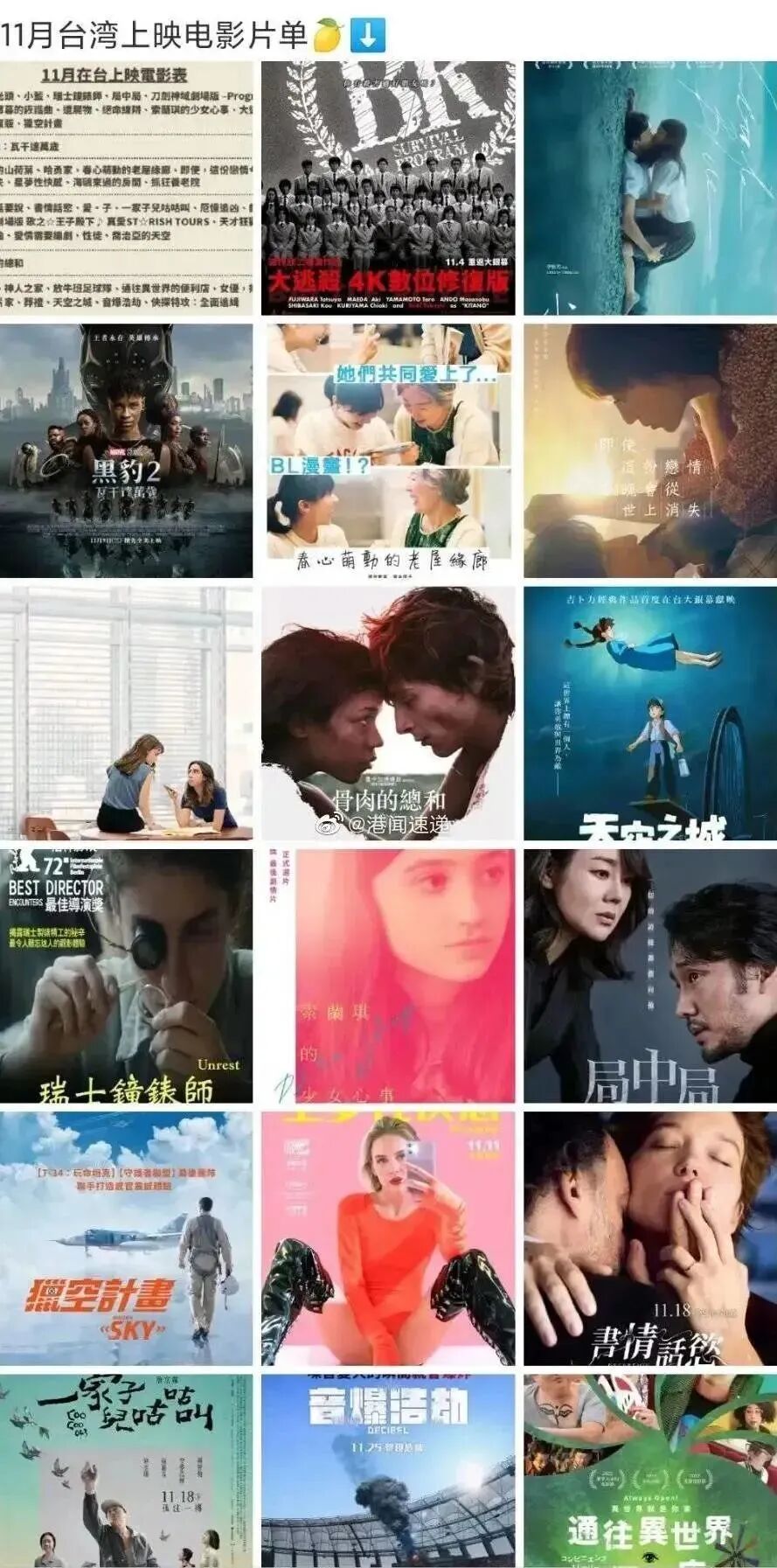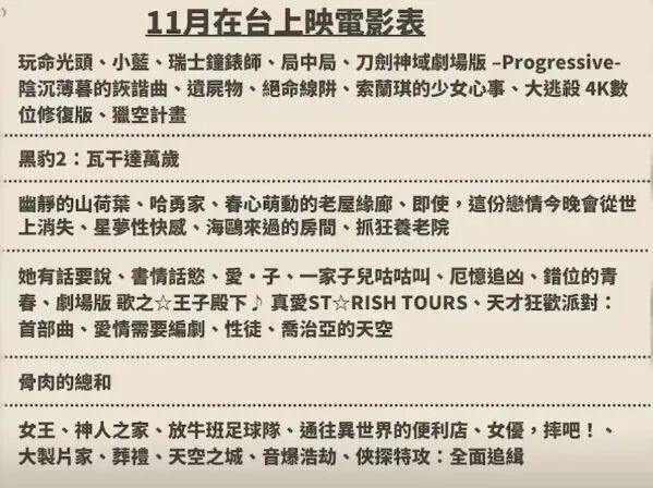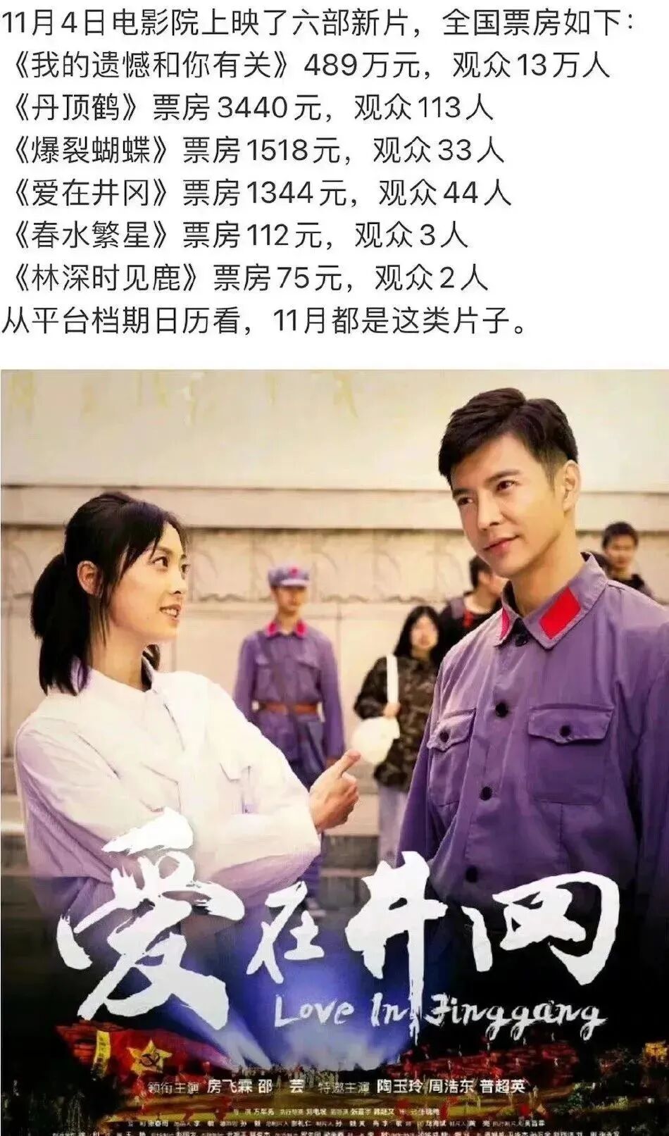统计了11月4日电影院上映的6部新片