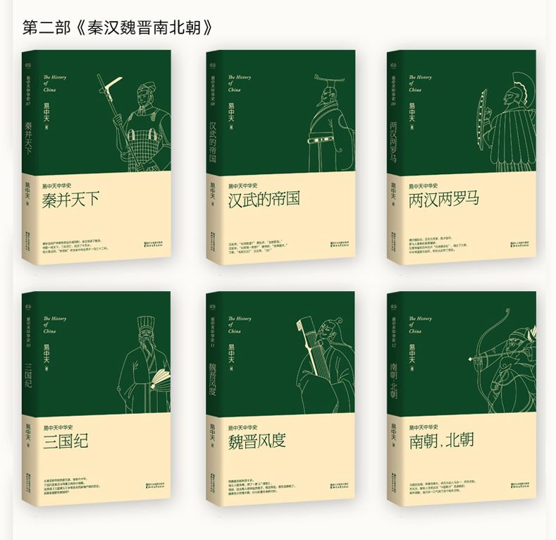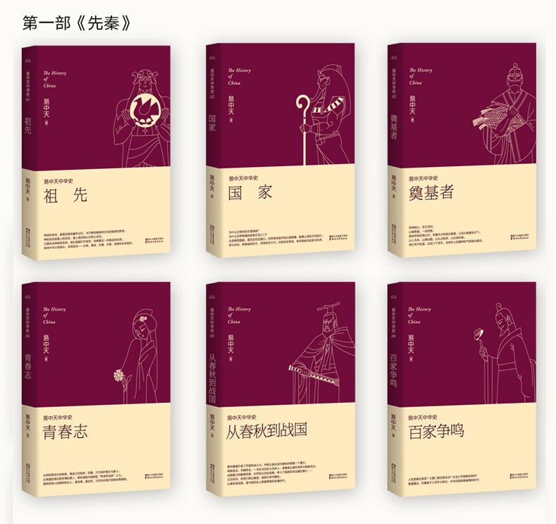 套装一《先秦》,套装二《秦汉魏晋南北朝》,套装三《隋唐》,套装四《宋元》,套装五《明清》,套装六《近现代》。