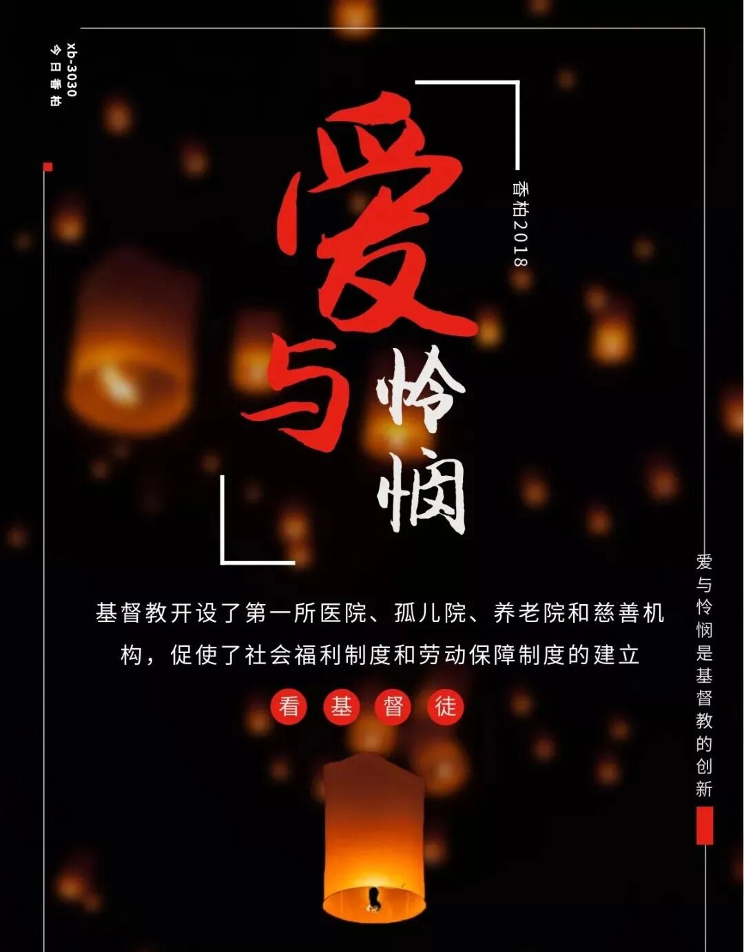 爱与怜悯是基督教的创新,基督教创立了世界上第一个慈善机构,建立了世界上第一个公共钱库(1世纪中叶);