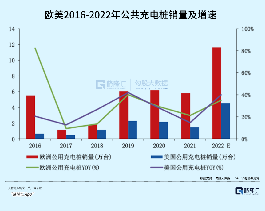 由于现有充电桩数量难以满足增长的电动车补能需求,欧美国家出台了一些规划和补贴政策,加速充电桩的建设。