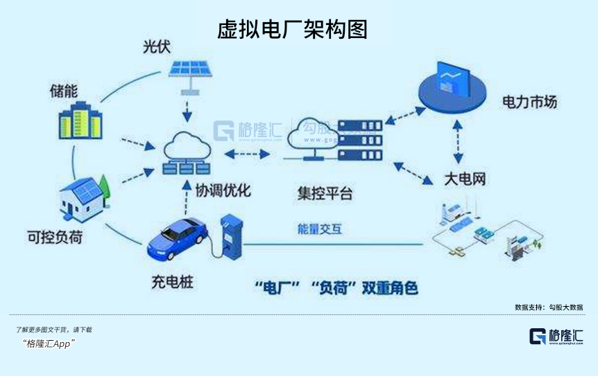 现在关于虚拟电厂的概念,投资者已经耳熟能详了,主要是通过将用电负荷、分布式能源、电网、储能装置等资源聚合,以技术手段对电力进行智能调配,实现电力供需进行削峰填谷调配,站在电力系统的角度,对平衡发电侧和用电侧明显的空间错配发挥重要作用。