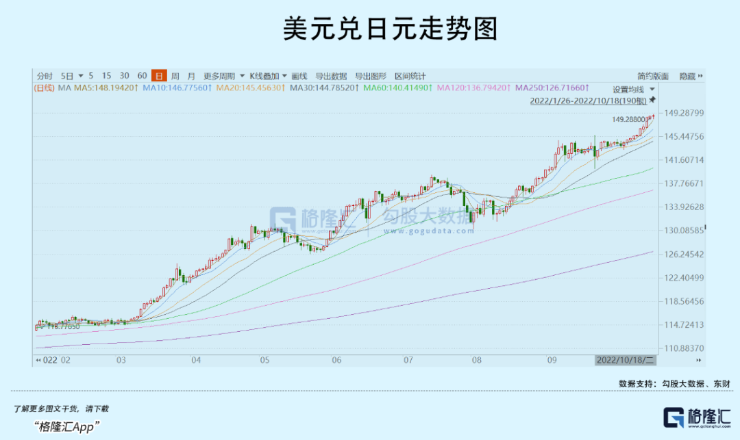 汇率市场亦不平静。美元指数上周四大跌,周五大涨,本周一大跌,与股市表现刚好相反。英镑兑美元最近3个交易日整体上行逾2%,似乎有短暂企稳态势。日元汇率在日本央行实质性出手干预的情况下,继续大幅贬值,现值已经来到149附近,已经超过1997年亚洲金融风暴时候的147.6,朝着历史最高峰的155.8迈进。