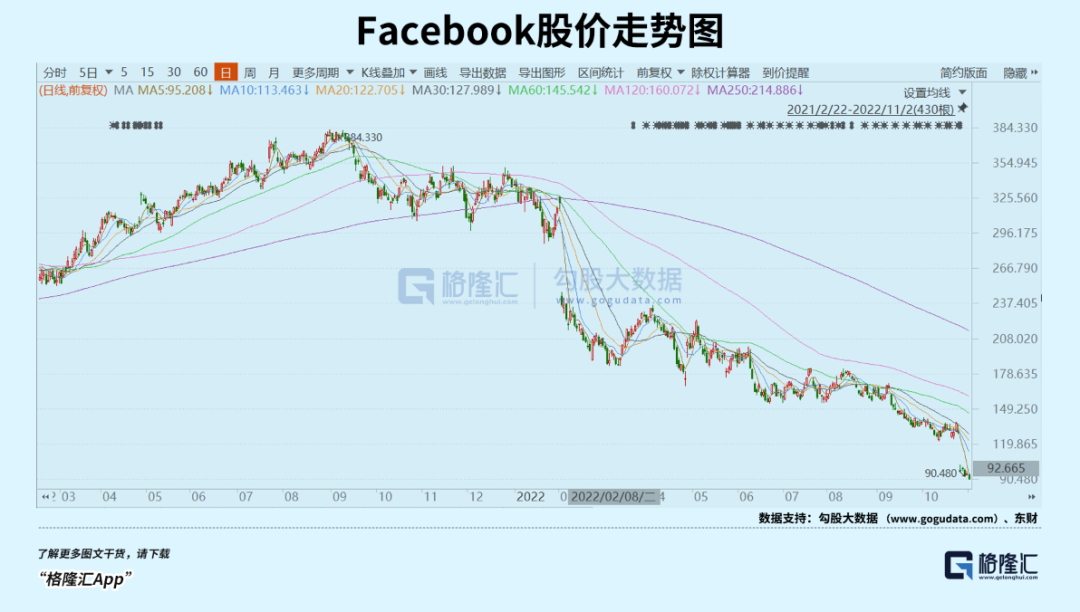 FANNG中,四个巨头已经相继爆雷。其中,奈飞高点回撤60%,最大回撤幅度高达76%。Facebook从高点回撤超过76%,现市值仅有2400亿美元,成为5大科技巨头里面暴雷最严重的。谷歌也从高位回撤41%。还有亚马逊,回撤幅度也超过50%,市值仅9400亿美元。苹果是最后的倔强,回撤幅度仅20%。