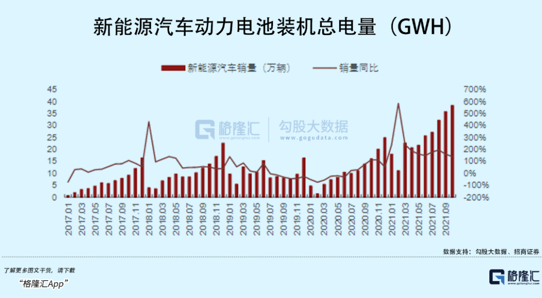 动力电池需求最旺盛的阶段,国内新能源车渗透率迅速从低于10%快速攀升至20%以上,仅仅只花了两年多的时间。今年10月份单月新能源车渗透率已经突破30%,全年销量也有望突破650万辆。