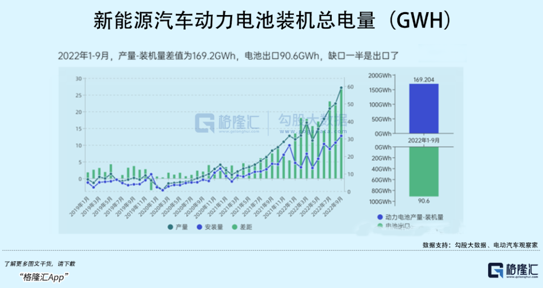 今年国内动力电池出口的增长就非常迅猛,今年1-10月,我国动力电池出口量已超100GWh,达105.3GWh。产量和国内装车量的差值里,大部分用作了出口。其中像欧美发达地区的老牌车企对电池质量性能有着更高的验证要求,并要兼顾绿色制造的属性,从这一点看出我国头部企业先进产能的优势。
