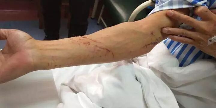 万幸,陈德金的手术很顺利,当晚脱离了生命危险。不过,他受的伤不仅只有肺部,在他的双手上,还有大大小小的伤口。医生说,陈德金的两只手臂上,要缝合的伤口多达12处,其中最长的伤口5厘米,光清创缝合手术就做了近两个小时。