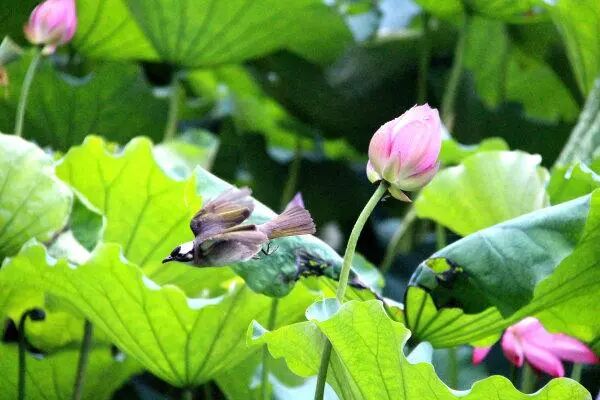 6月23日,雨后杭城,西湖荷花盛开,小鸟停落在荷花苞上,花鸟相映。浙江新闻客户端通讯员 柱子 摄