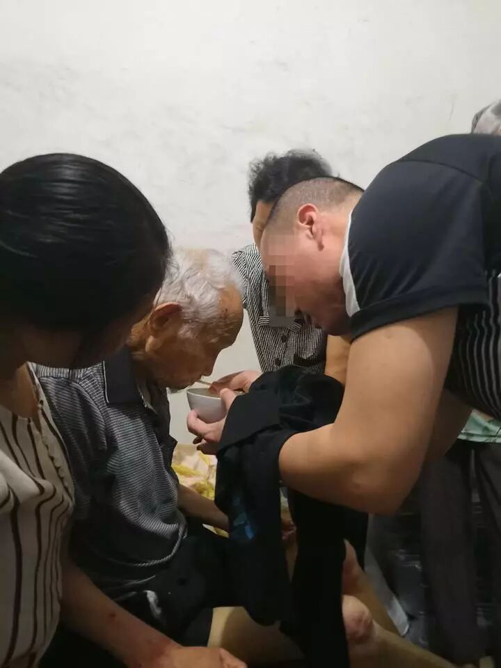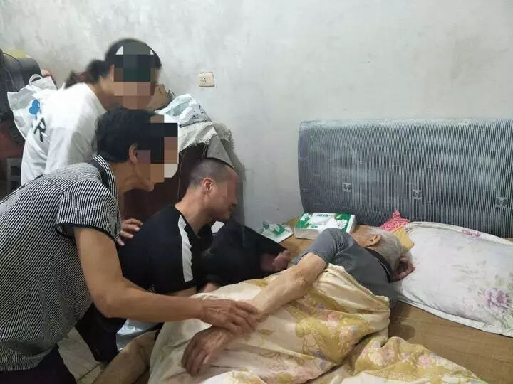 约30分钟后,爷爷似乎意识到了孙子的到来,突然睁开眼睛,猛地坐起来,甚至激动地想下床。张某彪端来一盆热水,亲自为爷爷洗漱。这个场景,让在场所有人都为之动容。