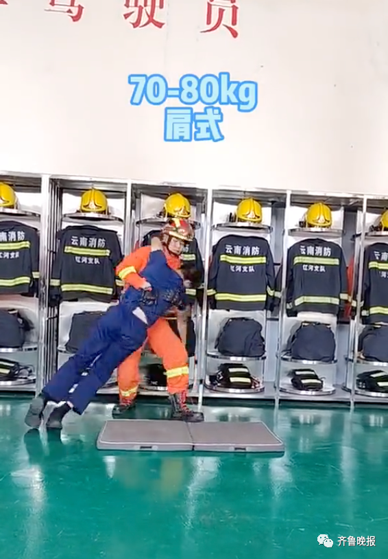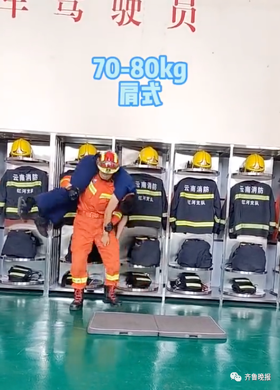 我们消防员平时都要进行力量训练,比方说扛假人,来模拟火场中的救人行动。我们假人的重量通常在120-140斤左右……如果有消防员告诉你该减肥了,那么一定是有原因的。