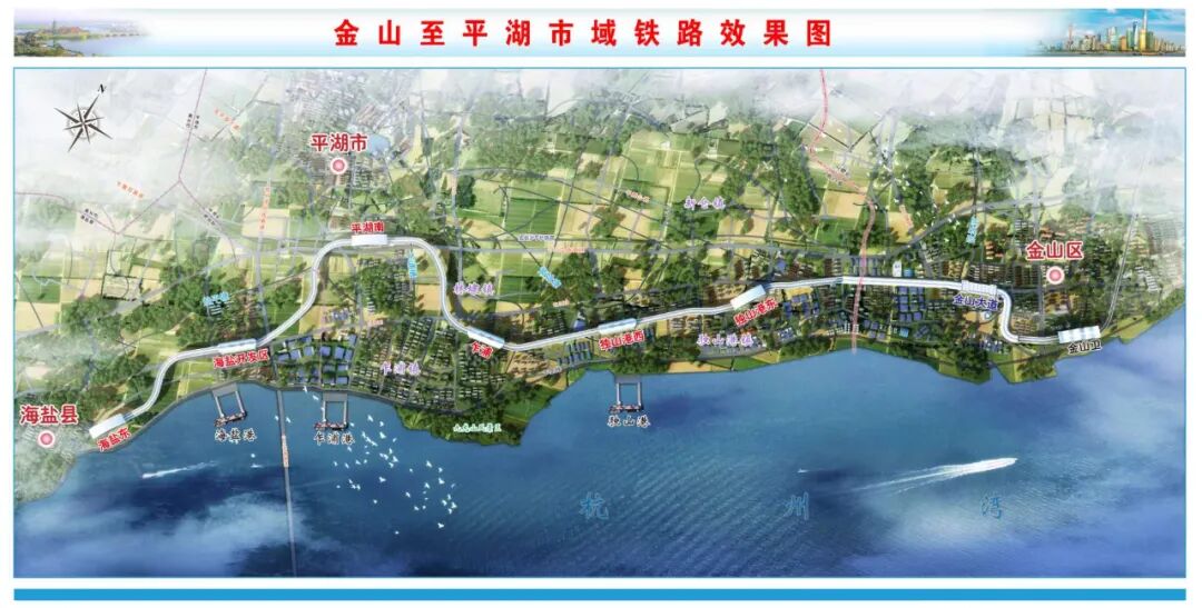 前几日,筹划多年的金山至平湖市域铁路浙江段,在紧邻沪浙边界的平湖独山港开工。