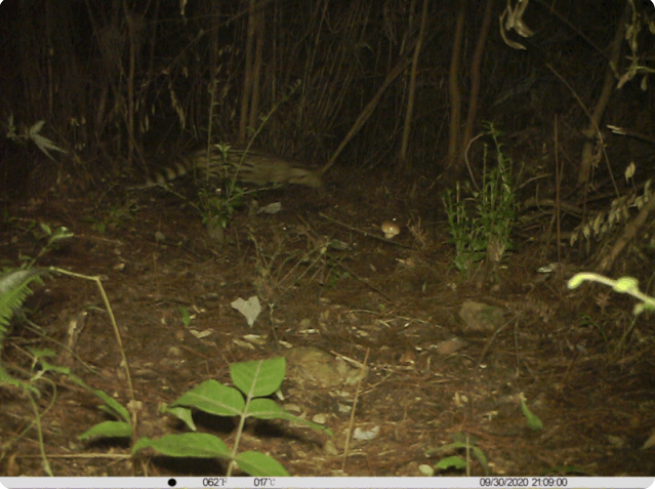红外相机2020年9月拍摄到的小灵猫画面。乌岩岭管理中心供图