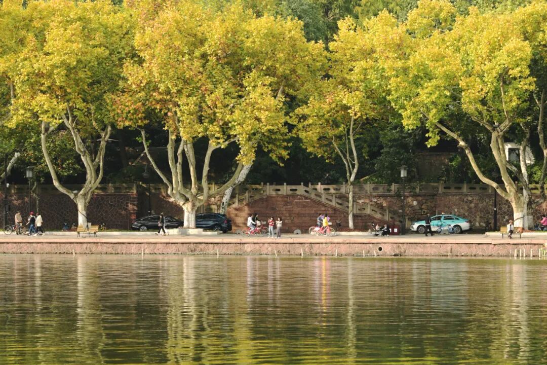 杭州北山街沿湖的梧桐树叶陆续泛黄,秋天的感觉浓了起来。浙江日报 拍友 里尔 摄