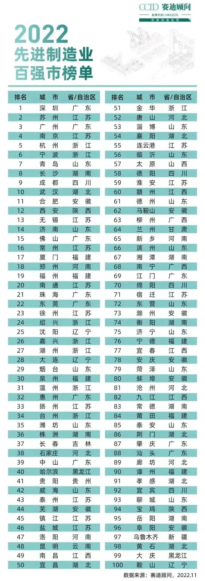 除了杭州和宁波,绍兴等地的先进制造业也相当耀眼,基本排在前50名。